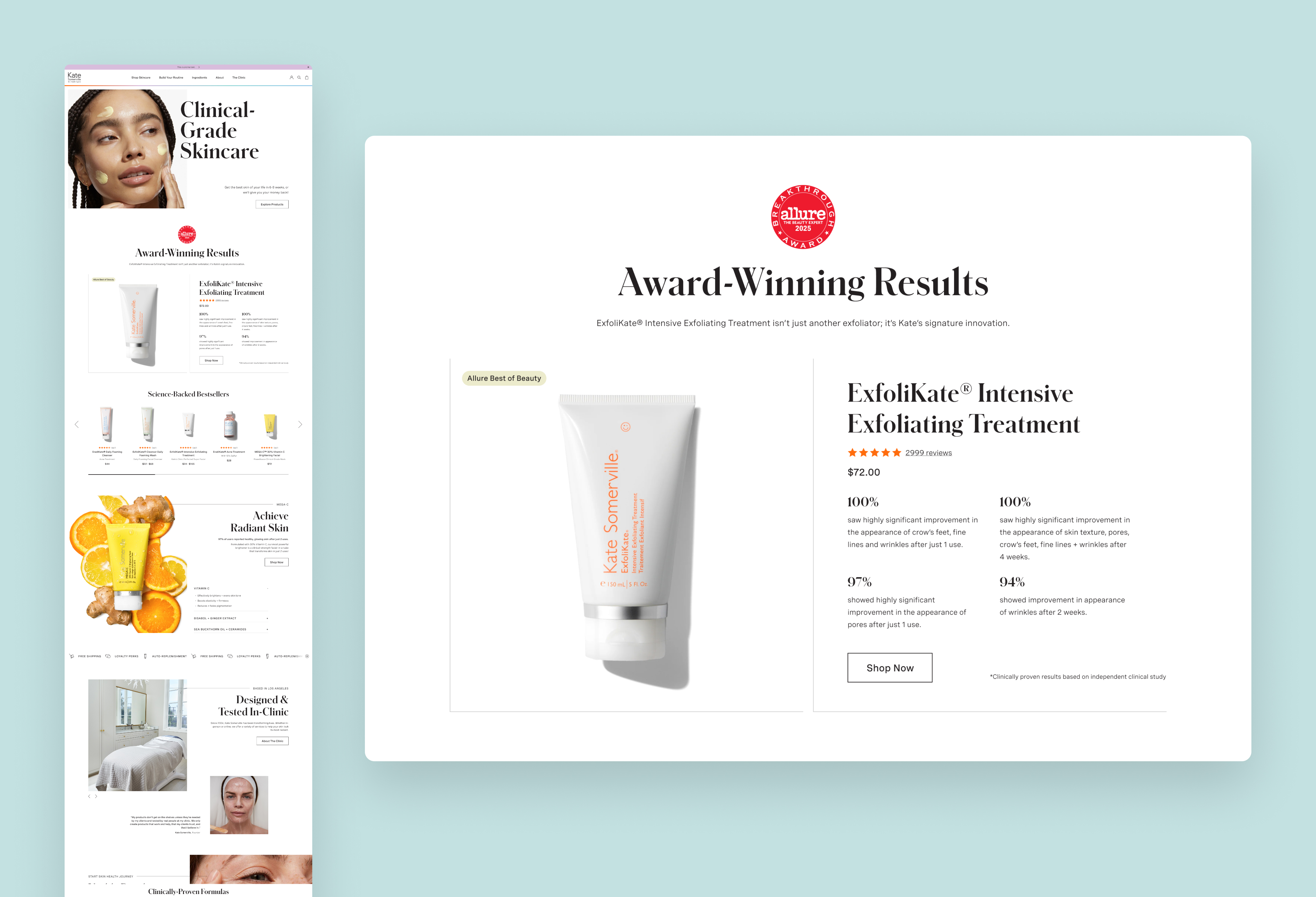 I designed a dedicated homepage module for ExfoliKate® Intensive Treatment. The hypothesis was that surfacing a proven, flagship SKU would provide a clear entry point for new and returning users.