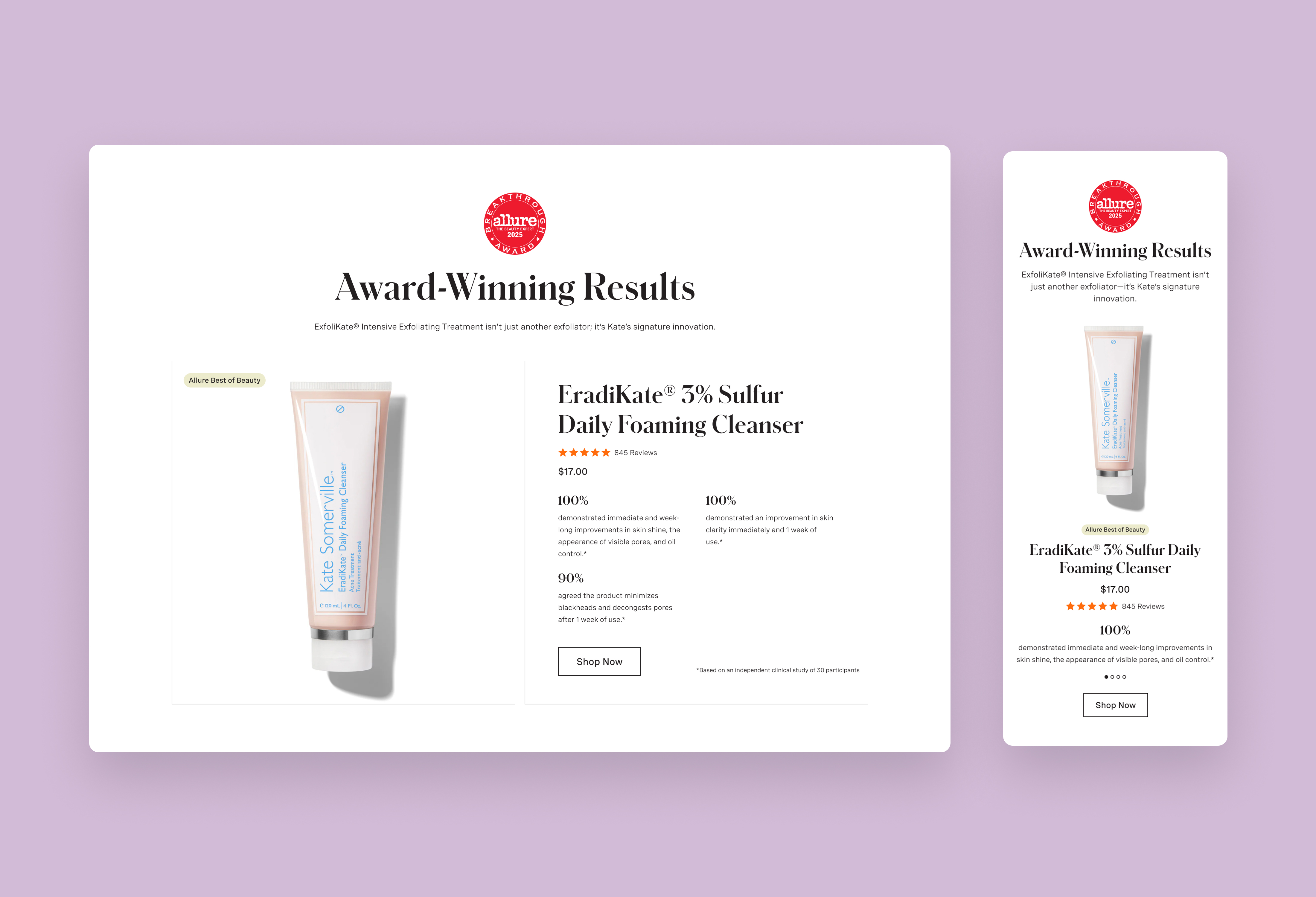 I updated the module to feature EradiKate® Sulfur Cleanser. I hypothesized that a daily-use, approachable product would lower the barrier to entry compared to a occasional-use, niche treatment.