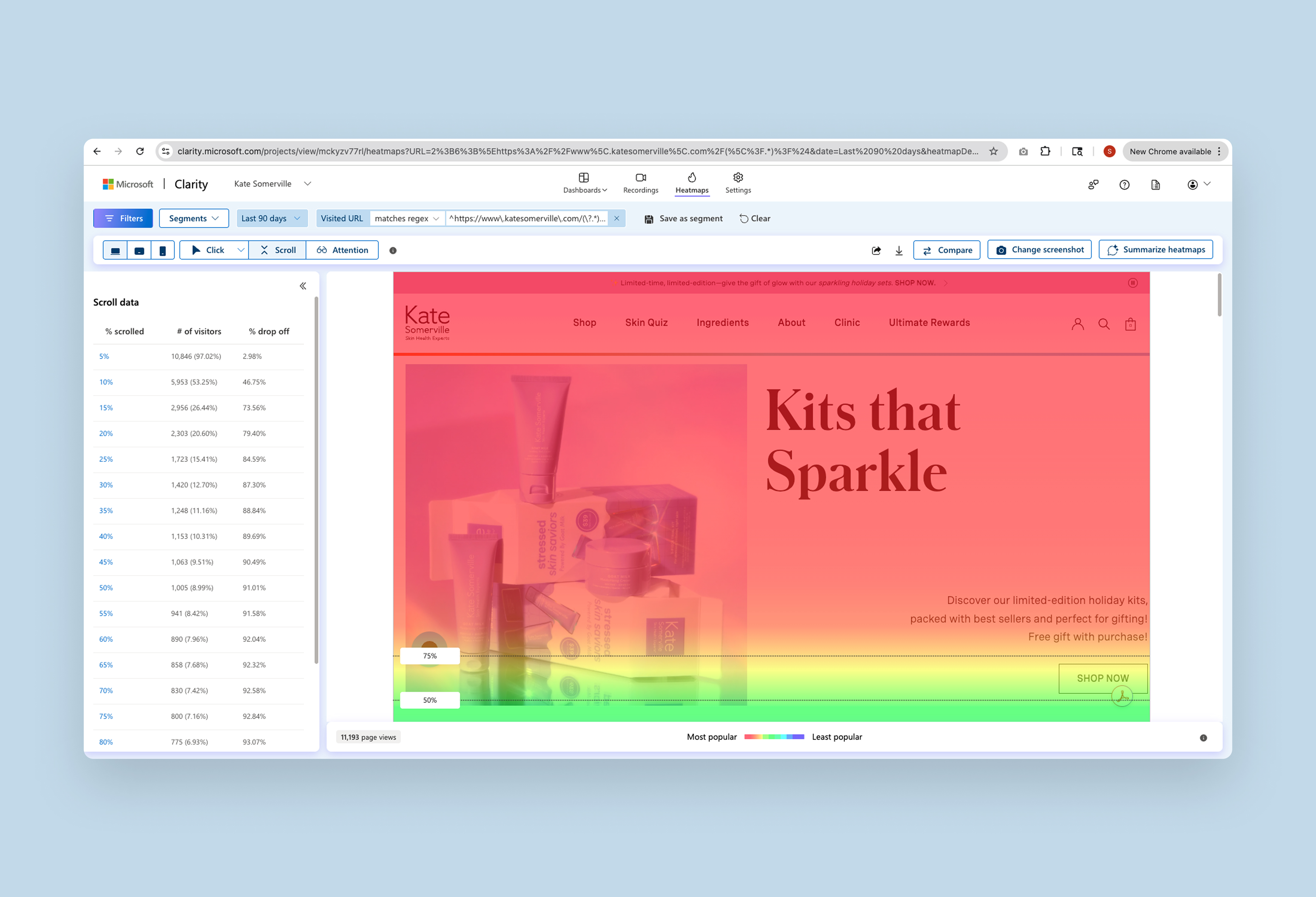 Heat mapping showing user scroll depth.